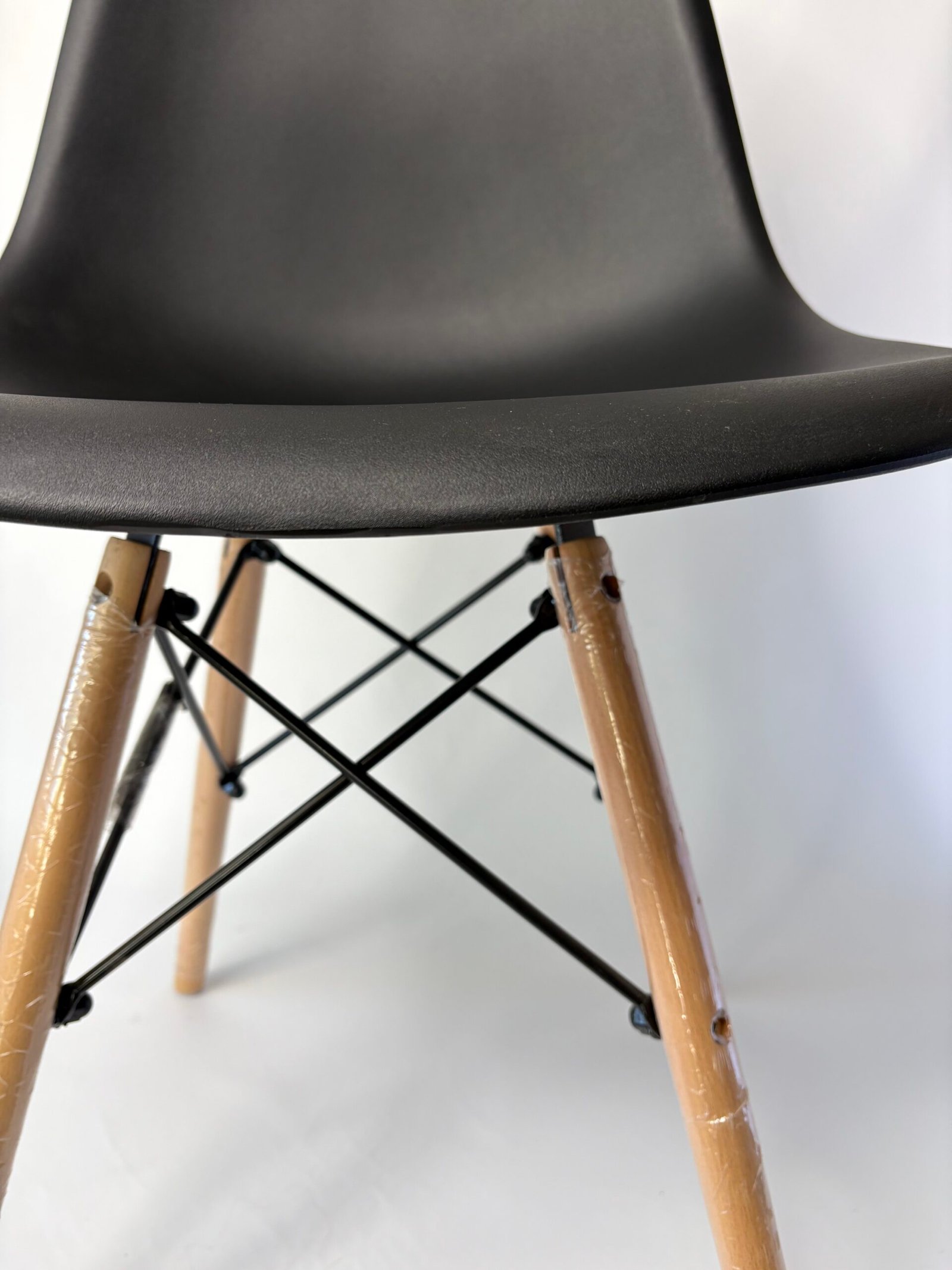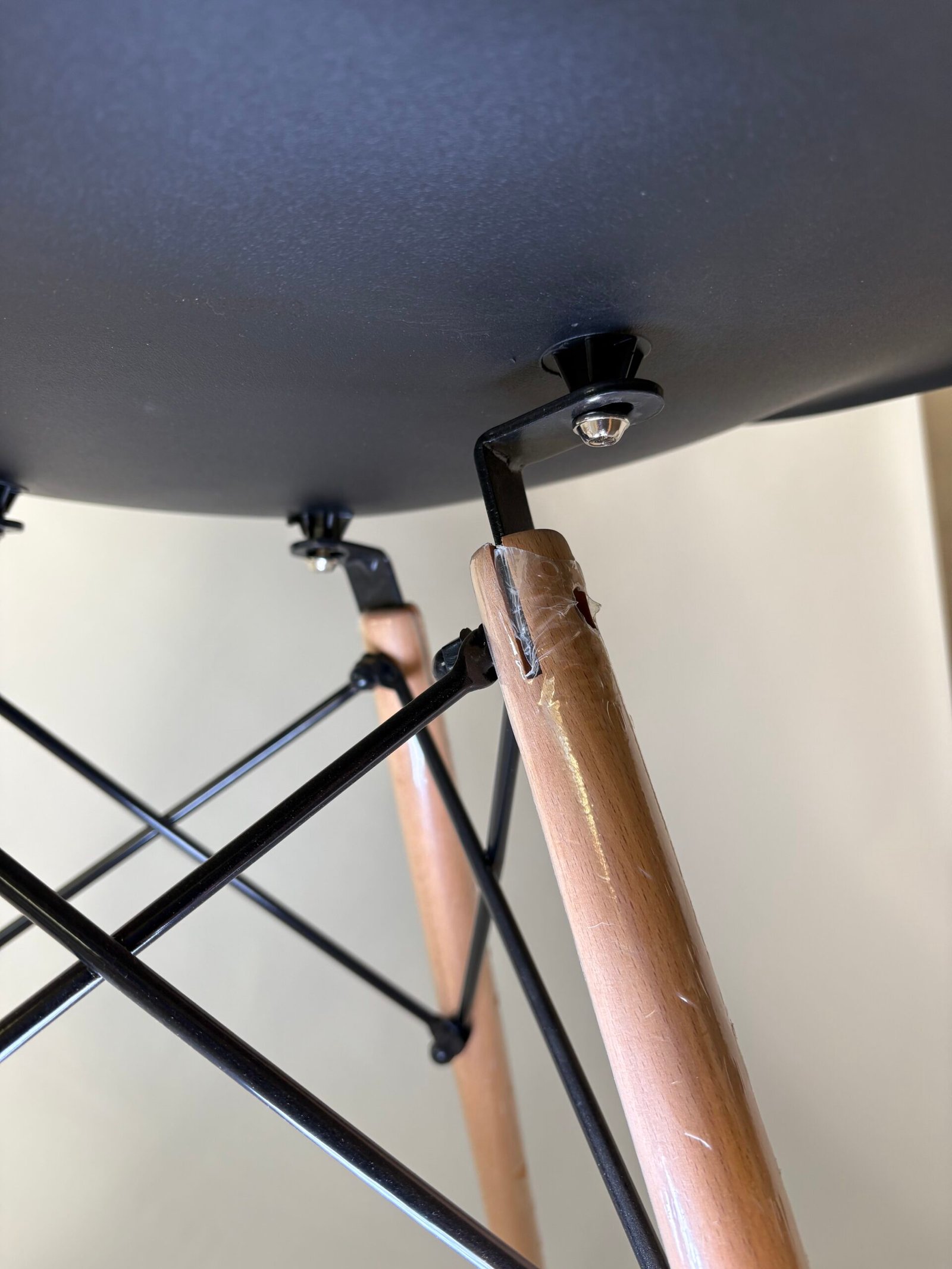 Materiales de calidad: Asiento de polipropileno y patas de madera con punteras antideslizantes.